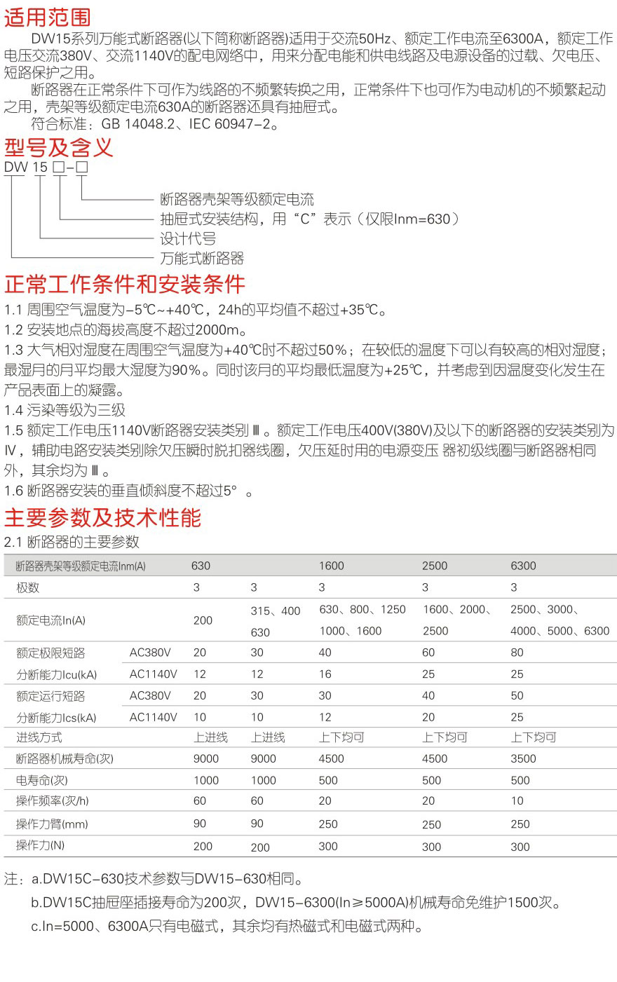 DW15系列萬能式斷路器